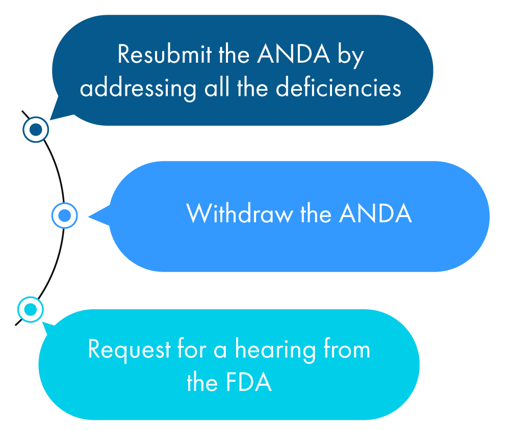The FDA must ensure that the approved generic drugs meet the safety, quality, effectiveness, and affordability standards. If the ANDA does not meet the FDA Regulatory requirements, a CRL is sent to the applicant, and it includes the deficiencies identified during its assessment.
