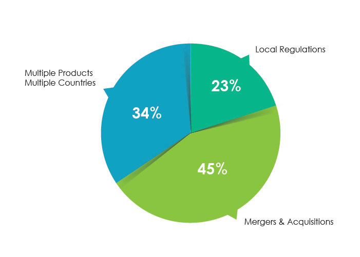 The above-listed issues may arise at the time of mergers and acquisitions, multiple products approved in multiple countries, and changes in local labeling.