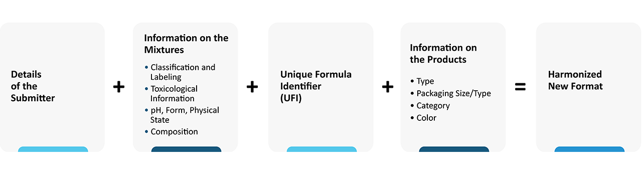 Companies, who wish to submit the Poison Centre notification, must provide the required information using the new harmonized format. The format is XML-based and compatible with IUCLID. The new harmonized format must contain the following information: