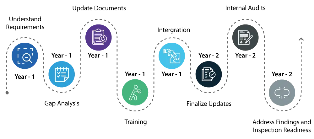 To effectively utilize the transition period and ensure compliance with the USFDA's Quality Management System Regulation (QMSR), manufacturers should adopt a proactive approach. Here's a suggested roadmap: