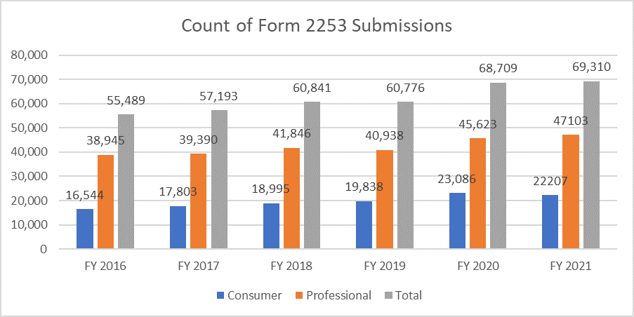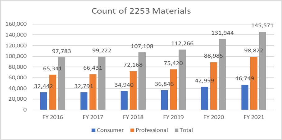 The below metrics clarify the count of forms 2253 submitted and the materials included within these submissions.