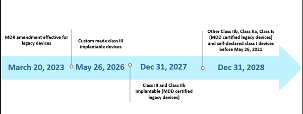 - It is imperative that the manufacturers determine the MDR risk class of their medical device to promptly identify the appropriate transitional timeline as per the amended MDR regulations.