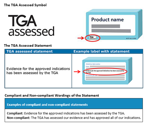 The TGA assessed claim is a symbol and/or statement that describes that medicine has efficacy for the indications claimed and is assessed by the TGA. The TGA assessed claim must be displayed as the TGA assessed statement with or without the ‘TGA assessed’ symbol. But if the symbol is used, it should be displayed with the statement. The wordings in which the statement is presented is also important for compliance. The TGA requires these to appear in the below-mentioned way.