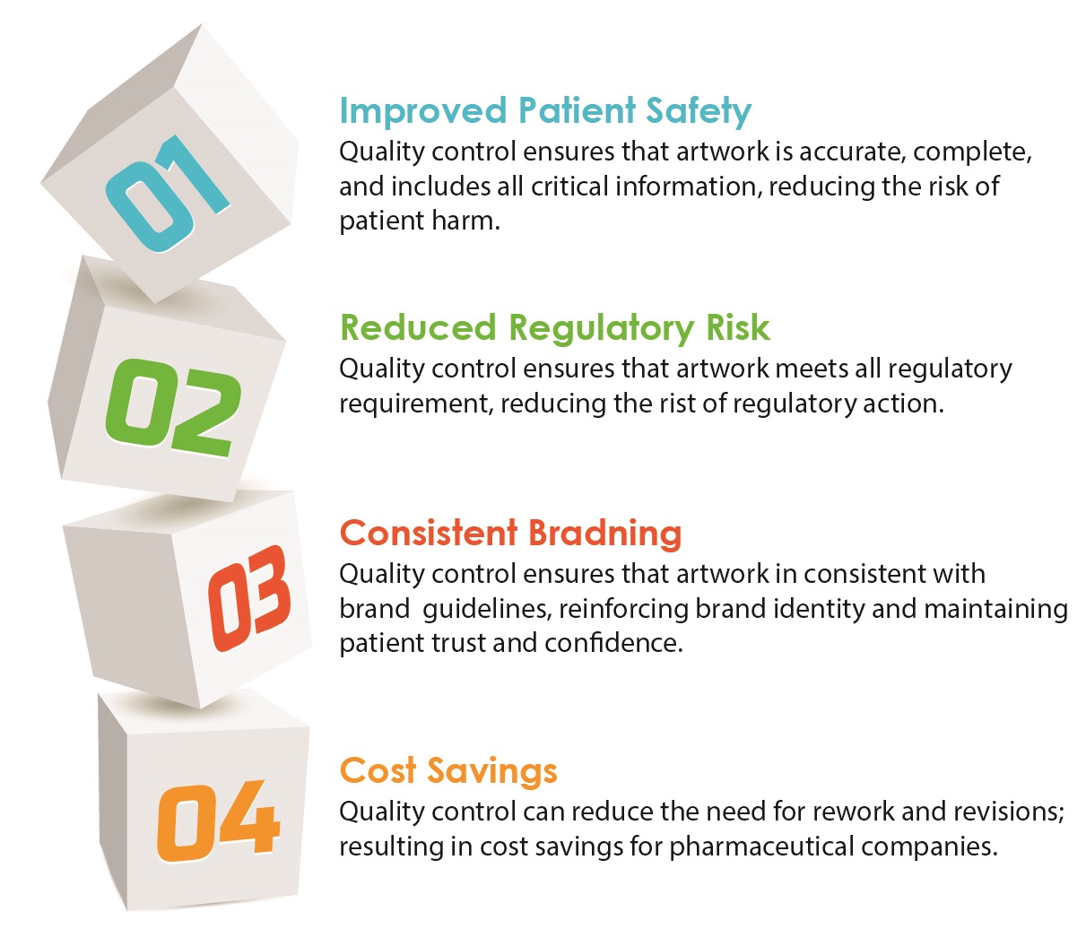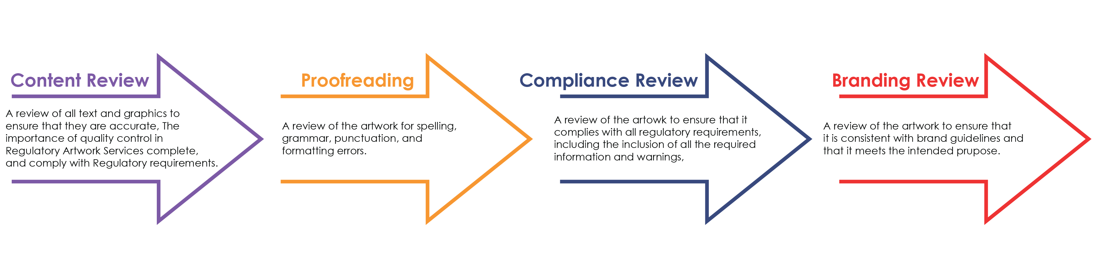 In addition to ensuring that the artwork is accurate, complete, and compliant, involving checks to detect errors and omissions, as discussed above, quality control ensures that the artwork is consistent with brand guidelines and it meets the intended purpose.