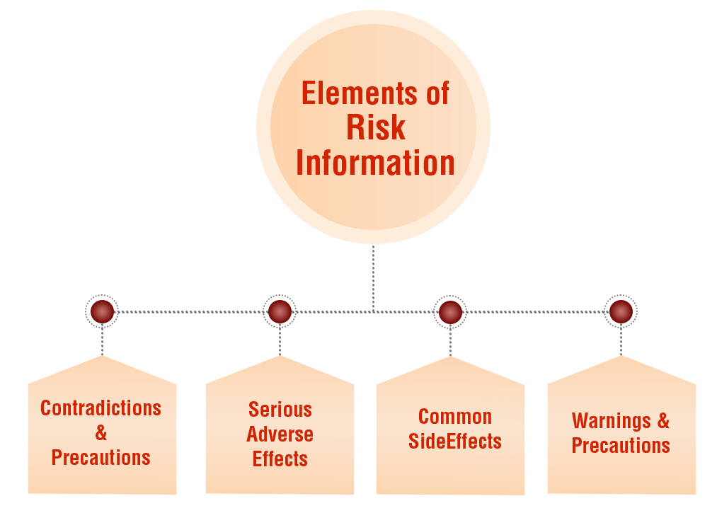 In addition to highlighting the benefits of a product, DTC materials must also provide comprehensive risk information. This includes informing consumers about potential side effects, contraindications, precautions, and interactions with other medications. A few states below are the parts of the risk information.