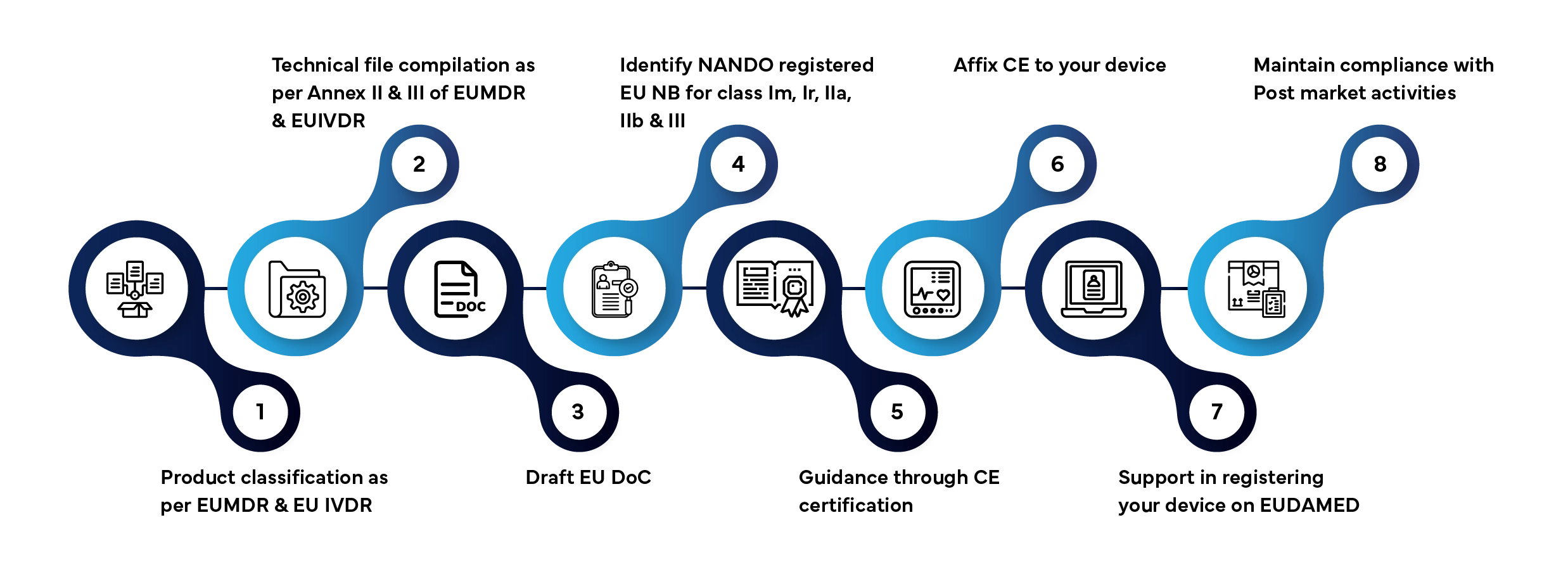 Market access of a medical device &IVD in the EU/Union market involves several defined stages. Here’s how Freyr manages the entire process for you: