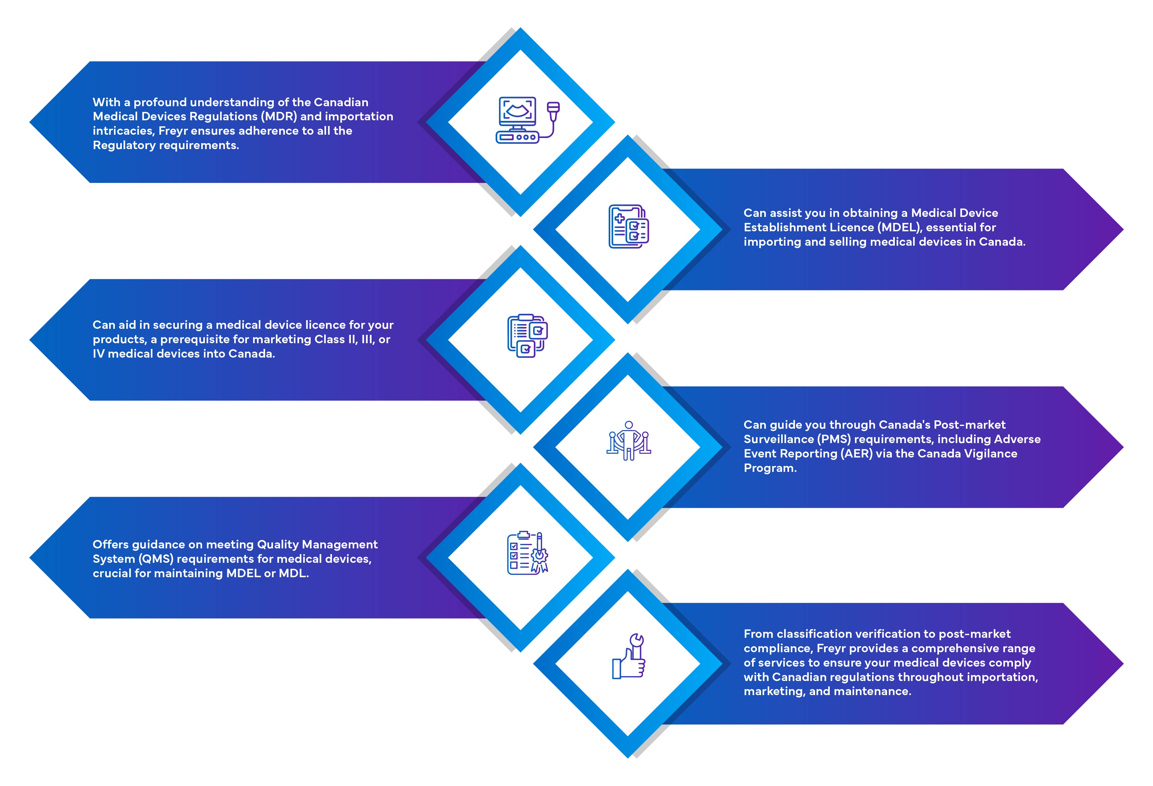 Streamline your Medical Device Importation process with our expert support. Contact Freyr's specialists today to ensure your medical device meets all the Regulatory requirements and achieves timely market access in Canada.