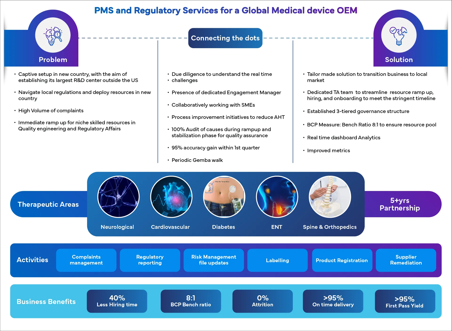 Despite its importance, many manufacturers face challenges in meeting PMS expectations. Fragmented data sources, inconsistent global reporting obligations, multilingual complaint channels, and increasing regulatory scrutiny create operational complexity. Preparing PMS Plans, PMSRs, PSURs, and PMCF documentation, requires specialized expertise, accurate data interpretation, and cross-functional coordination. Gaps in trending, signal detection, Health Hazard Evaluation (HHE), or medical device vigilance reporting can lead to audit findings, potential recalls, or risks to product continuity.