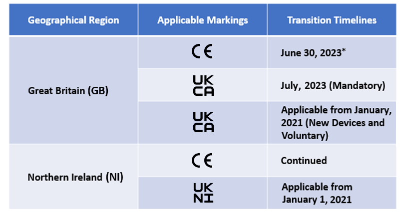 The manufacturers will now have to appoint a UK-approved body to obtain UKCA marking. Though CE marking is allowed, it is applicable only for a certain time period. The transition timelines for the same are mentioned below –