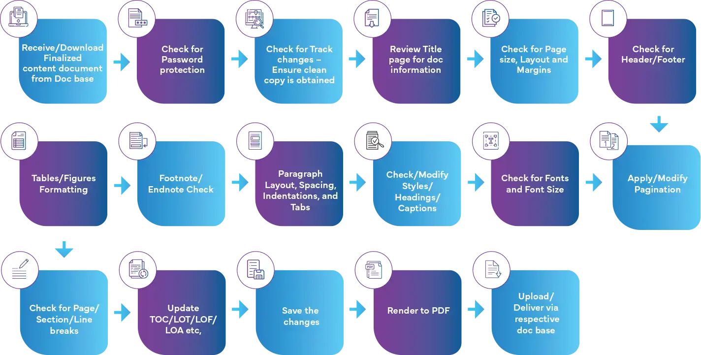 At Freyr, we recognize that preparing and submitting Regulatory documents is a crucial phase in the product development lifecycle. Ensuring that these documents are accurately formatted and compliant with Regulatory agency standards is vital for successful submissions. Our document formatting services are designed to offer comprehensive support for all your Regulatory publishing needs, ensuring legible documentation and assistance with special characters, fonts, and styles.